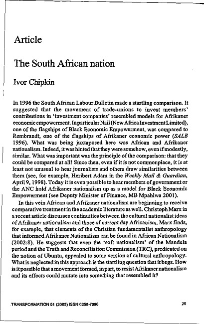 Ivor Chipkin considers South African nation-building and democracy through a look at ANC and BC conceptualisations of "freedom" and "the people".
