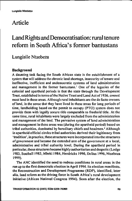 Land rights and democratisation : rural tenure reform in South Africa's former bantustans