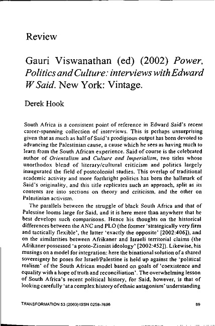 Review of: Gauri Viswanathan (ed.). Power, politics, and culture. New York: Vintage Books, 2002