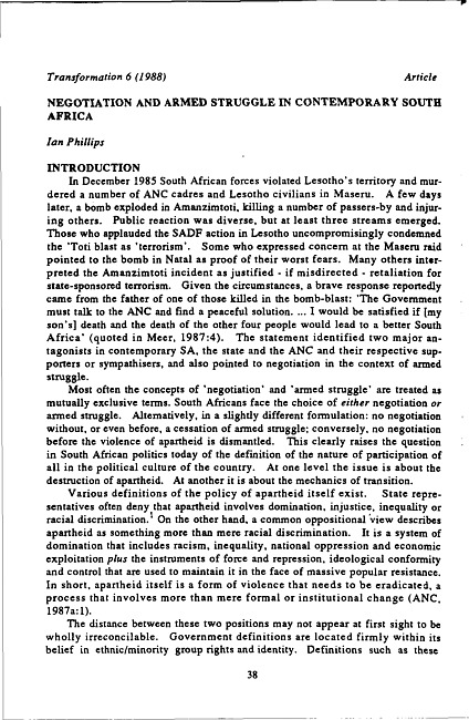Negotiation and armed struggle in contemporary South Africa