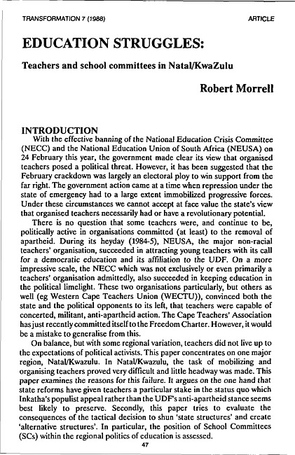 Education struggles : teachers and school committees in Natal/KwaZulu
