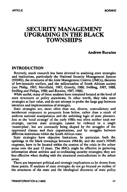 Unlike the conventional wisdom that state incorporationist strategies are irrelevant, author's in-depth study of Mamelodi examines the implications of a shift in state urban strategy.