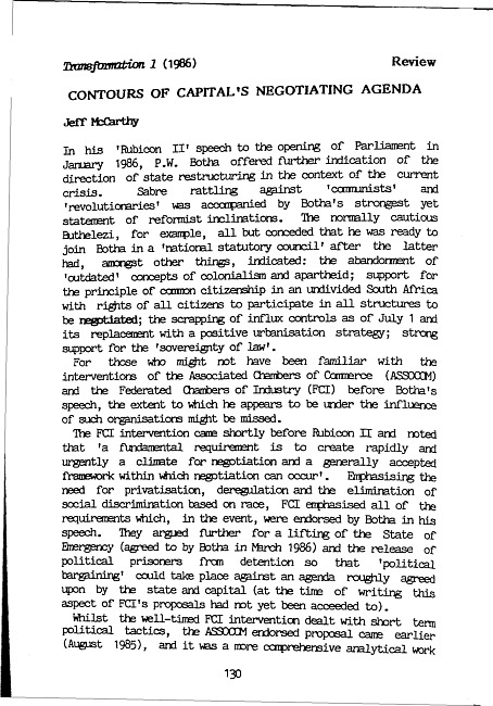 Review of: J.A. Lombard, J.A. du Pisanie. Removal of discrimination against Blacks in the political economy of the Republic of South Africa. Pretoria: Bureau for Economic Policy and Analysis, University of Pretoria, 1985