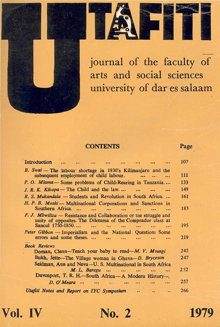 Utafiti : Journal of the Faculty of Arts and Social Sciences, University of Dar es Salaam