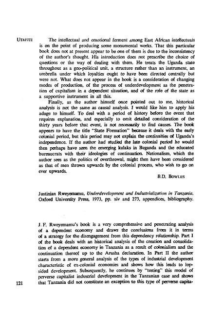 Book review : Underdevelopment and industrialization in Tanzania by Justinian Rweyemamu