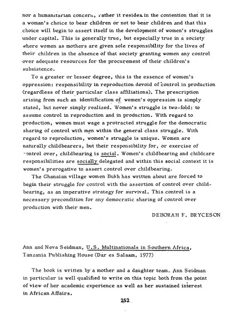 Review of: Ann Seidman & Neva Seidman. U.S. multinationals in southern Africa. Dar es Salaam: Tanzania Publishing House, 1977