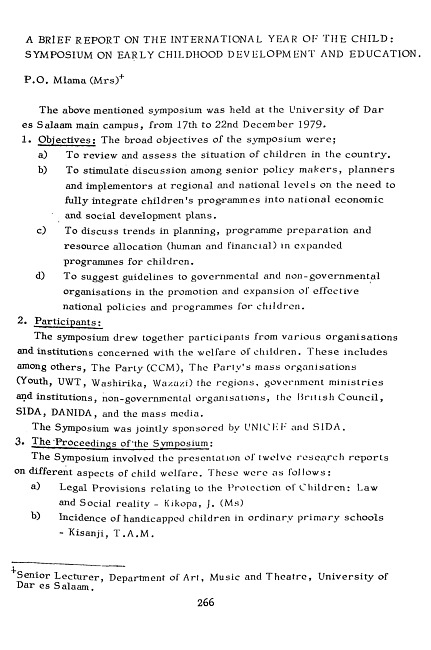 A brief report on the International Year of the Child : Symposium on Early Childhood Development and Education
