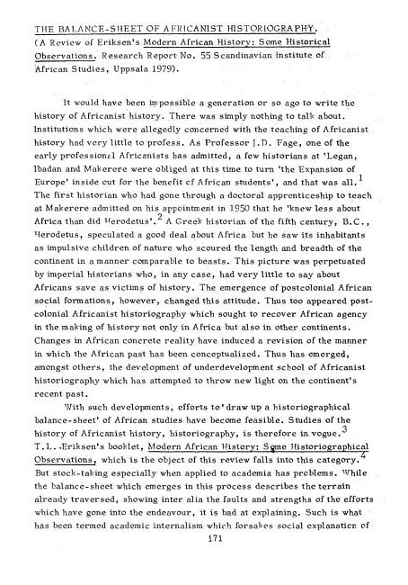 A review of Eriksen's Modern African history: some historical observations. Research report no. 55. Scandinavian Institute of African Studies, Uppsala, 1979