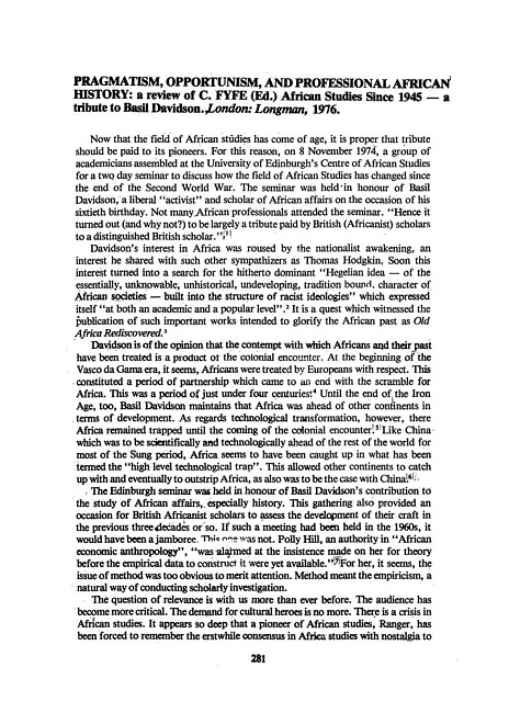 Review of: Christopher Fyfe (Ed.). African studies since 1945. London: Longman, 1976
