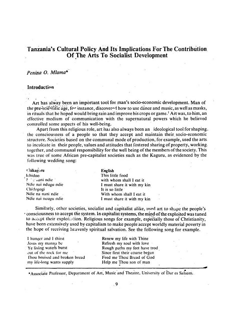 Tanzania's cultural policy and its implications for the contribution of the arts to socialist development