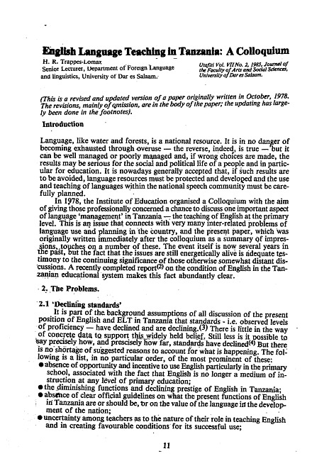 English language teaching in Tanzania : a colloquium