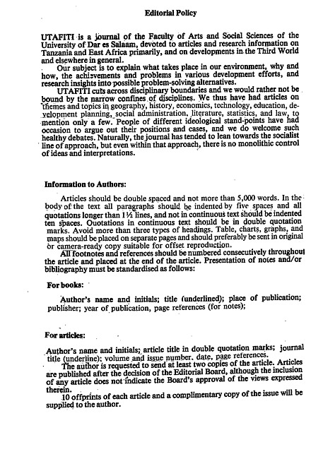 Utafiti : Journal of the Faculty of Arts and Social Sciences, University of Dar es Salaam