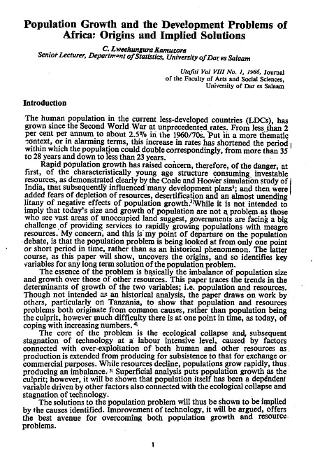 Utafiti : Journal of the Faculty of Arts and Social Sciences, University of Dar es Salaam