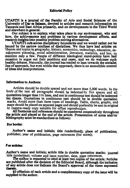 Utafiti : Journal of the Faculty of Arts and Social Sciences, University of Dar es Salaam