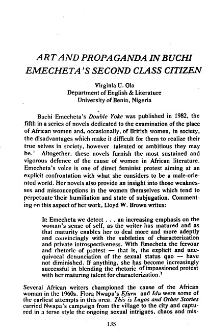 Art and propaganda in Buchi Emercheta's Second class citizen