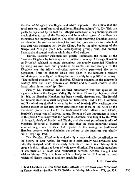 Review of: Robert Chambers and Jon Moris (eds.). Mwea. München: Weltforum Verlag, 1973