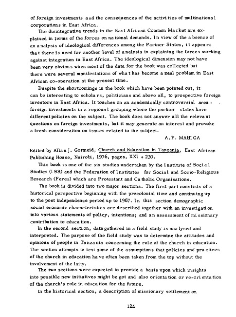 Review of: Allan J. Gottneid (Ed.). Church and education in Tanzania. Nairobi: East African Publishing House, 1976