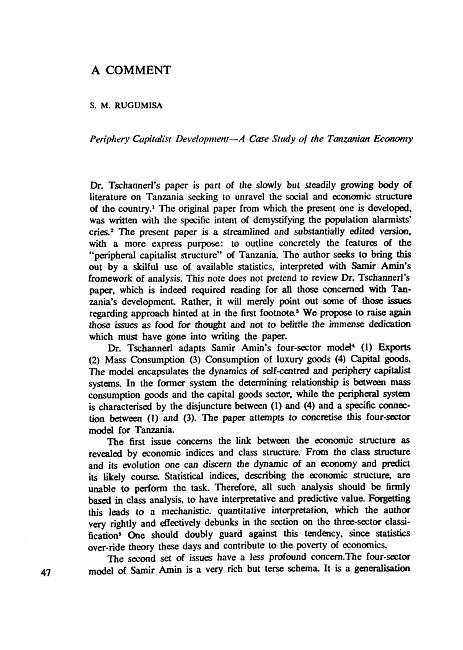 A comment on : Periphery caputalist development : a case study of the Tanzanian economy