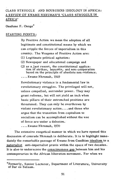 Class struggle and bourgeois ideology in Africa : a review of Kwame Nkrumah's "Class struggle in Africa"
