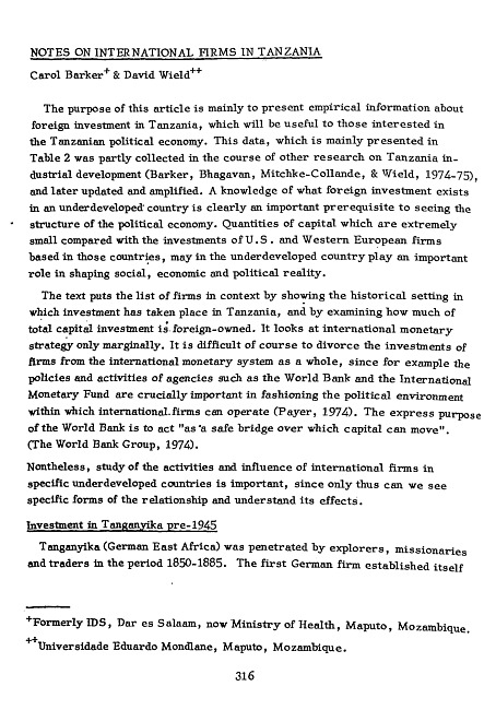 Notes on international firms in Tanzania