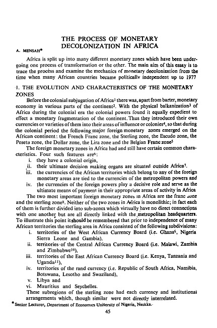 The process of monetary decolonization in Africa