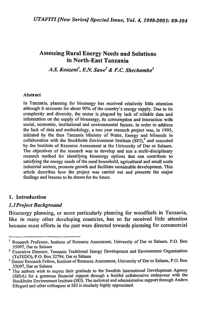 In Tanzania, planning for bioenergy has received relatively little attention although it accounts for about 90% of the country's energy supply. Due to its complexity and diversity, the sector is plagued by lack of reliable data and information on the supply of bioenergy, its consumption and interaction with social, economic, institutional and environmental factors. In order to address the lack of data and methodology, a two year research project was, in 1995, initiated by the then Tanzania Ministry of Water, Energy and Minerals in collaboration with the Stockholm Environment Institute (SEI), and executed by the Institute of Resource Assessment at the University of Dar es Salaam. The objectives of the research was to develop and test a multi-disciplinary research method for identifying bioenergy options that can contribute to satisfying the energy needs of the rural household, agricultural and small scale industrial sectors, promote growth and facilitate sustainable development. This article describes how the project was carried out and presents the major findings and lessons to be drawn for the future.