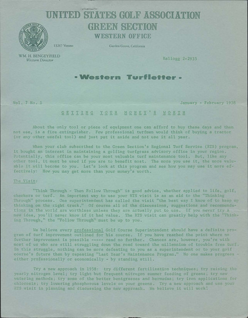 Western turfletter. Vol. 6 no. 1 (1958 January/February)