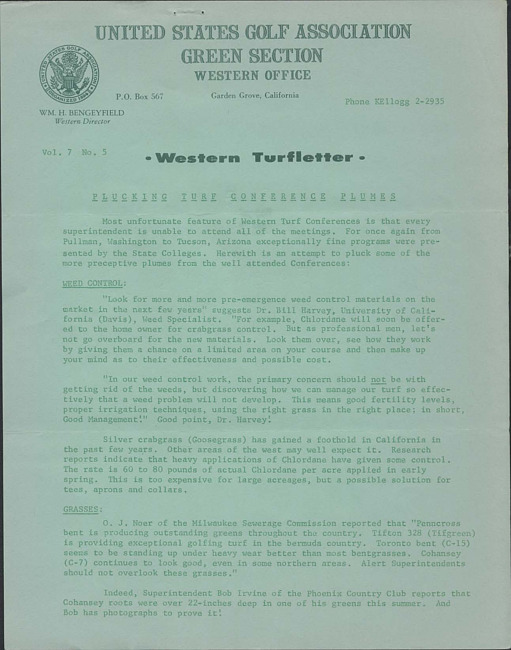 P.O. Box 708, Far Hills, N.J. 07931 ; Web: https://www.usga.org ; Email: greensection@usga.org