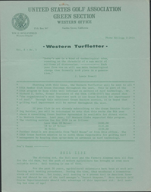 P.O. Box 708, Far Hills, N.J. 07931 ; Web: https://www.usga.org ; Email: greensection@usga.org