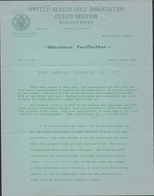 Western turfletter. Vol. 8 no. 4 (1960 July/August)