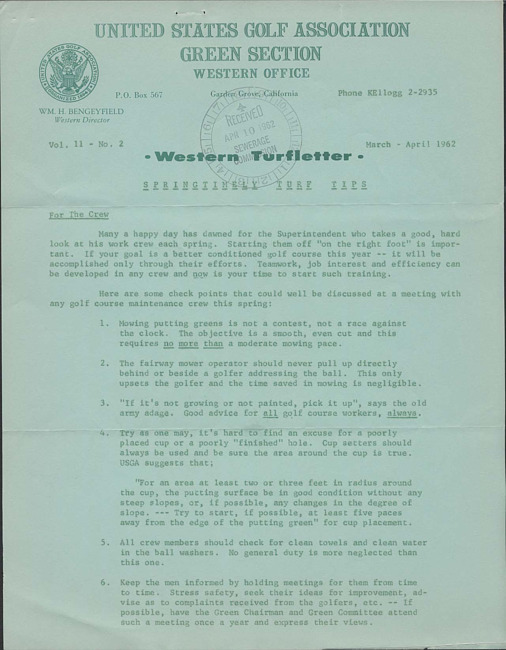 Western turfletter. Vol. 10 no. 2 (1962 March/April)