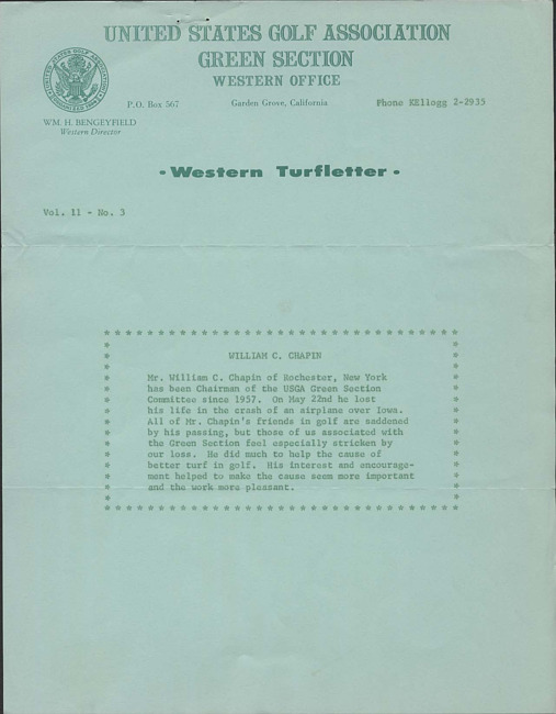 P.O. Box 708, Far Hills, N.J. 07931 ; Web: https://www.usga.org ; Email: greensection@usga.org