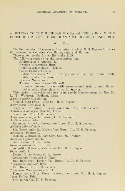 Additions to the Michigan flora as published in the fifth report of the Michigan Academy of Sciences, 1904