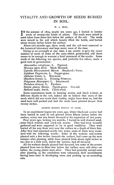 Vitality and growth of seeds buried in soil