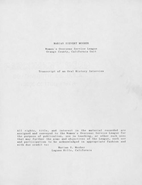 Marian Sievert Mosher, transcript of an oral history interview : July 7, 1989